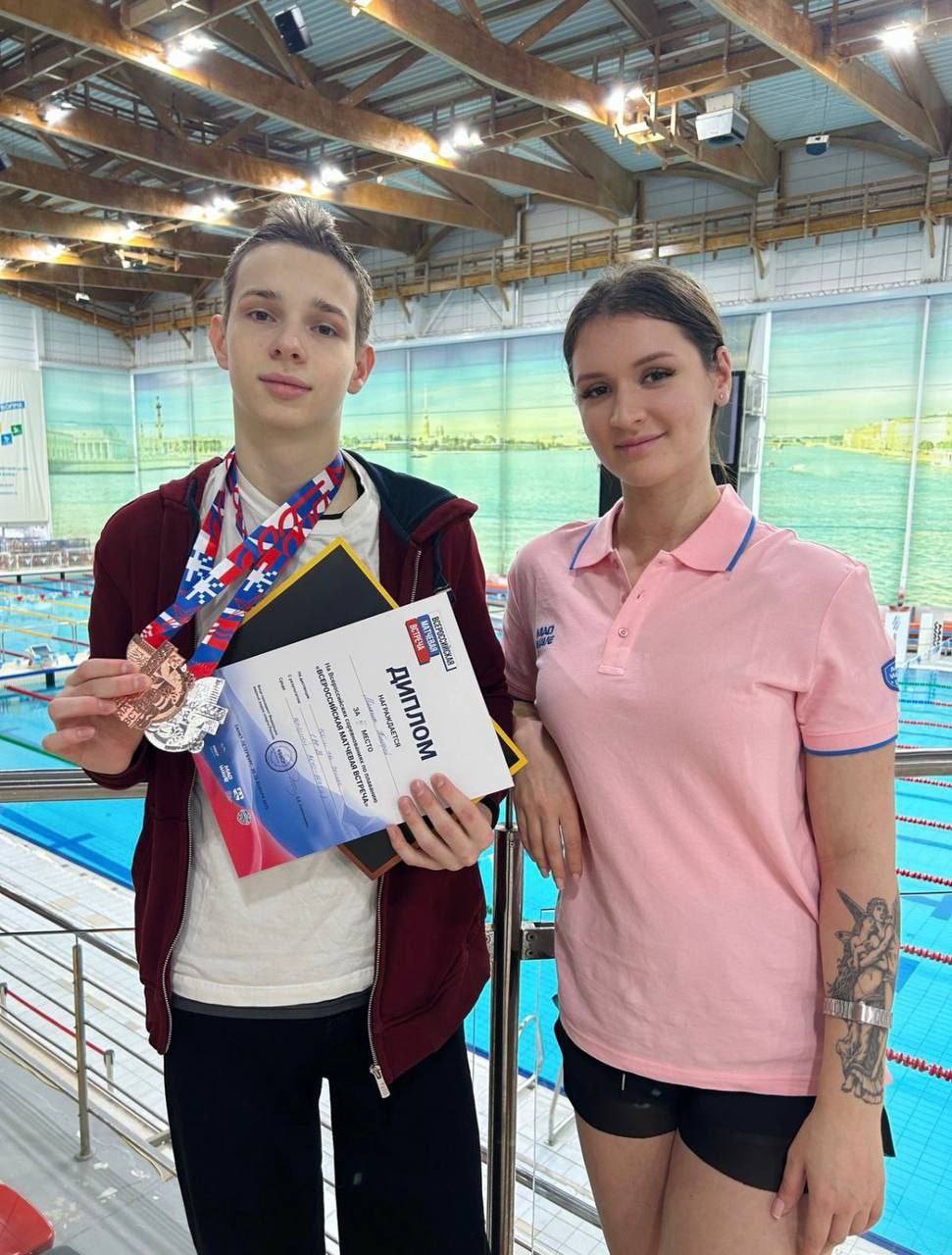 Воспитанники СШ «Олимп» стали призерами всероссийской матчевой встречи по плаванию!В Центре водного спорта «Невская волна» в Санкт-Петербурге прошли соревнования по плаванию - Всероссийская матчевая встреча. Этот старт представляет собой лично-командное соревнование, где каждый участник может побороться не только за личное первенство, но и принести зачетные очки своей команде. В соревнованиях приняли участие спортсмены от 9-15 лет из 30 регионов России. Спортивную школу «Олимп» города Фрязино представляли 2 спортсмена: Манохин Тимофей (10 г.р.) и Павлючко Максим (15 г.р.). Павлючко Максим стал победителем на дистанциях 50, 100, 200 баттерфляем Манохин Тимофей стал серебряным призером на дистанции 200 м на спине Спортсменов подготовили: Лубова С.А. и Мельникова Е.О., которые вложили душу в подготовку спортсменов. Поздравляем наших ребят за упорство, волю к победе и блестящие результаты! |
